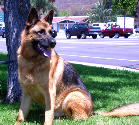 This spectacular 3 year old German Showline male was abandoned by his breeder. The reason? He has a crooked front leg and isn't show quality. The family that has him isn't equipped to give the time to a high energy boy. Reno hasn't been well socialized but has had some training in his past. He gets along with other large dogs.