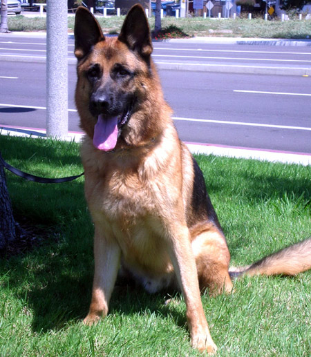 Reno has a tattoo in his ear - he is a gorgeous red and black guy that probably weighs nearly 100 lbs. We will only place Reno in a home with Shepherd experience - he is not appropriate for a family with small children as his exuberance will knock the little ones over.