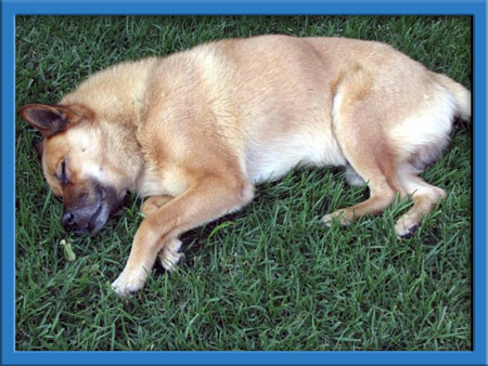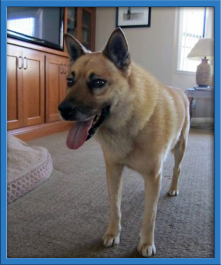 We have learned that Rhett is a calm kinda guy, not bothered by anything and likes to spend his time relaxing. He is good with all animals--big and small. We think he is a Jindo/GSD mix. He is probably about 5 years old and a very easy going guy!
