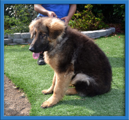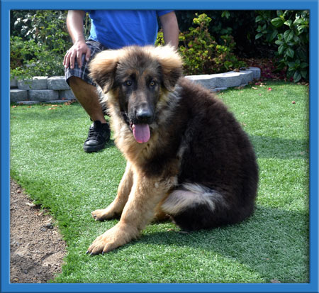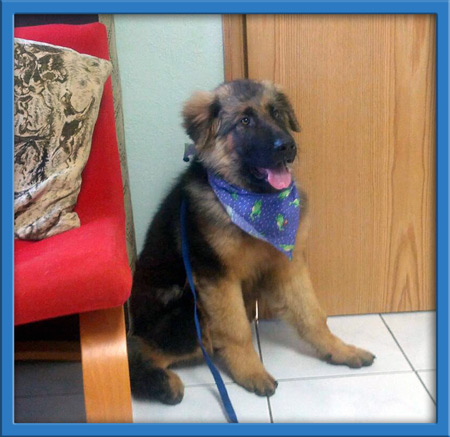 Riggs is just a baby and sometimes he acts like one too. At just 5 - 6 mos old, he is suffering from some serious growing pains in his front legs so we have him on an anti inflammatory medication. His hind end isn't quite as built up as the front but we are hoping with time, that his body parts catch up to each other.