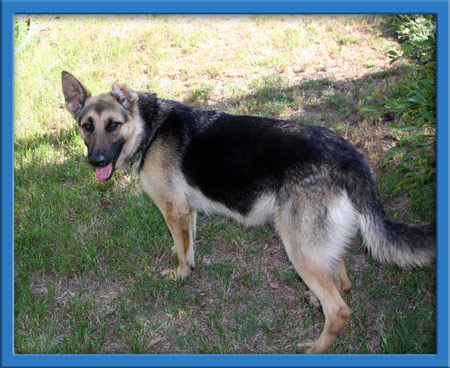 Riley was rescued on her last day at a very impacted city shelter. Thanks to a kind shelter worker who brought her to our attention, we were able to get her out in the nick of time. We do not know how she lost her ear but it is a recent loss and her skin is still healing. We had her examined by our vet team this afternoon and Riley is indeed pregnant. She is a gorgeous, sweet, pure bred shepherd that we are assuming someone was using for breeding. We don't want to think about what kind of life she had before, we just want to focus on the wonderful future she will now have!