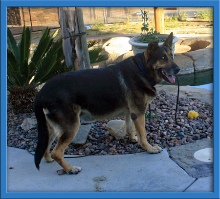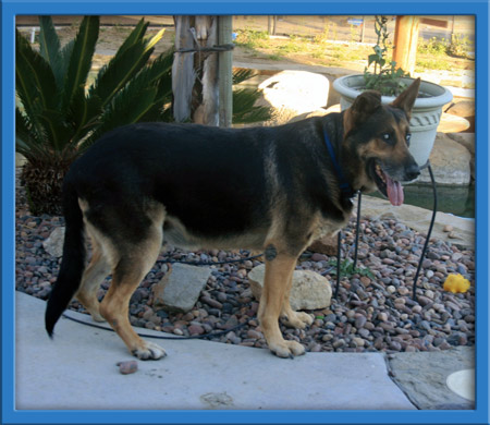 Rocky has very few problems other than sight. He is agile, housebroken, walks nicely on a leash and does well with other dogs. He appears to have flea allergies so we keep up on his monthly flea medication and his coat is starting to shine after a couple of months of good nutrition.