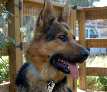 Rolf is a beautiful boy with deep piercing eyes - he loves women, is not so sure about men (we're working on that) and will sleep in a crate - interestingly, his first night was in an oversized crate and he whined through the night. On Day #2, he found the smaller crate which suits him JUST right and he will sleep very soundly.