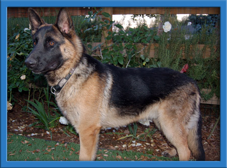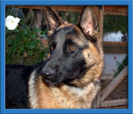Rolfe gets along well with other dogs - he is not dominant and is learning how to play. He is absolutely smitten with Athena (and she with him) so if you are looking for two dogs, this is a pretty handsome pair. Rolfe is learning to sleep in a crate - we are relatively certain he has not spent much time inside but he definitely embraces the concept and loves staying close to his foster mom - just like every shepherd we've met, if they've been outdoor dogs, once they learn that they can be inside, that is where they choose to be!