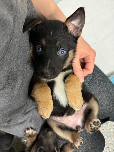 Coastal GSR was contacted by a southland shelter that let us know a tow truck driver, who was moving an abandoned car, found a box containing three puppies inside the car. The puppies were estimated to be 5 weeks old. There were two males and a female and their foster family named them: Ranger, Rolo, and Rooney.