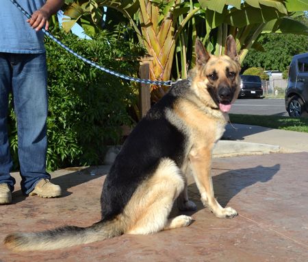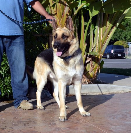 Roscoe is about 14 months old. He takes direction beautifully and wants to please, but he is young and has some trust issues since being turned in to Coastal by his previous owner. He knows quite a few commands. One example is that you can have him sit and stay before you put his food down and walk away. He won't touch his food until you say eat. He also knows how to sit and shake hands. Roscoe is not going to be small dog or cat friendly.