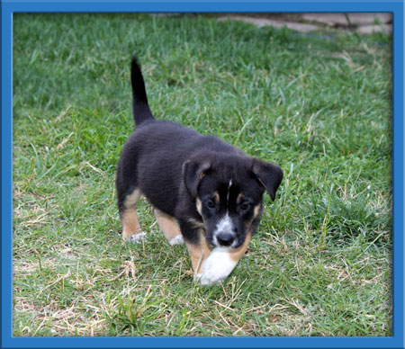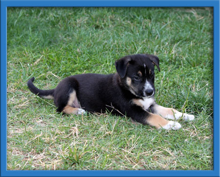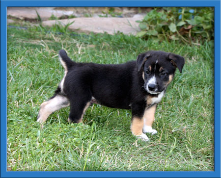 Royce with his interesting white markings looks like he is wearing formal attire. He is an elegant puppy who always looks dashing no matter what he is doing. He is a laid back boy who enjoys a good time, especially if it involves his toys. Mellow and sweet and will be a wonderful companion for years to come.