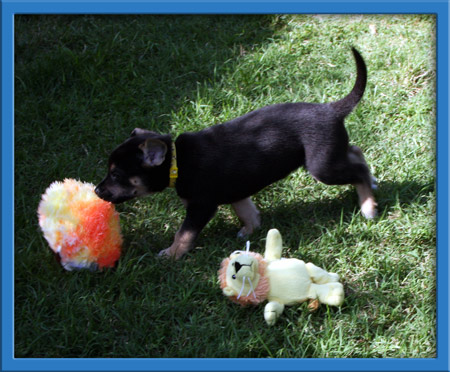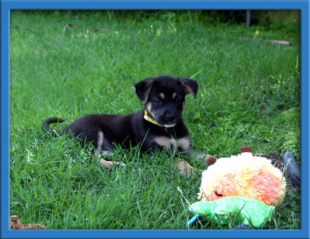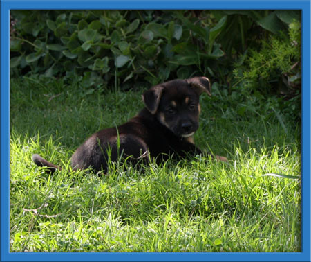 Ruby, like the gem, is indeed a treasure. She is a beautiful black and tan girl who has a distinctive spot on her chin. This little charmer seems to sparkle, a smile always on her face. She is playful and active and always up for some fun. If your busy, no problem, she will entertain herself with what ever she can find. While she loves to explore, she loves to being petted and cuddled. Ruby is definitely a little lovebug and will make a wonderful addition to her new family.