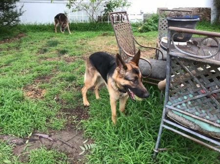 Ruby Tuesday is an owner turn in. Her family had to move quickly and could not take her with them. A good-hearted neighbor took her in and is fostering her along with a senior Coastal GSR dog and her own GSD.