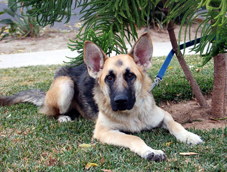 Rugby is rooming with an active female and they get along fine. He walks beautifully on a leash but like any dog, will benefit from obedience courses.