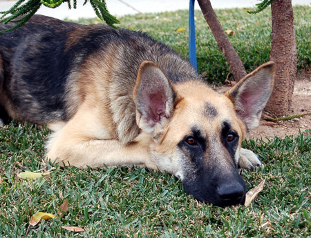 Rugby is a 'stop traffic' kind of boy. He has a beautiful coat waiting for good nutrition to set in - he's got blonde and black going on. He is very very friendly with other dogs and at his first adoption event, he met a Chihuahua, which he allowed to dominate him after a few moments. Rugby was languishing in a higher kill shelter when we were alerted to his plight.