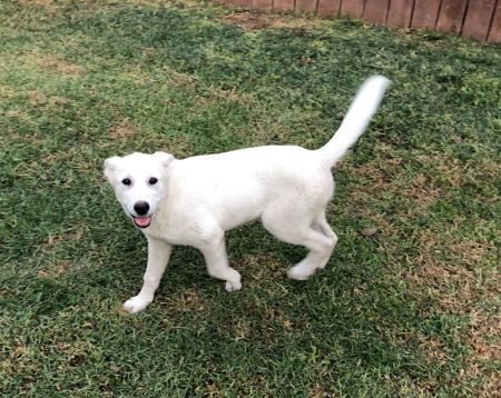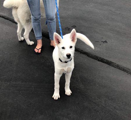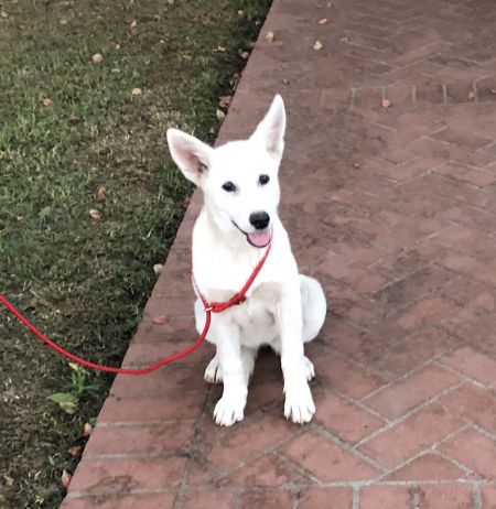Meet Ruger. She’s a 4-6 month old white shepherd mix that we rescued from a life of being stuck in a backyard. Whatever her mix is, she acts mostly like a German Shepherd. She’s a little shy at first, but once she warms up, she’s super friendly and adores people. She’s presently in a foster home with seven other dogs and doing wonderful. She’s learning to sleep in a crate and to walk on a leash. She seems to be a quick study and is doing very well. She now needs to find her own family and a forever home. She is truly a sweet girl!