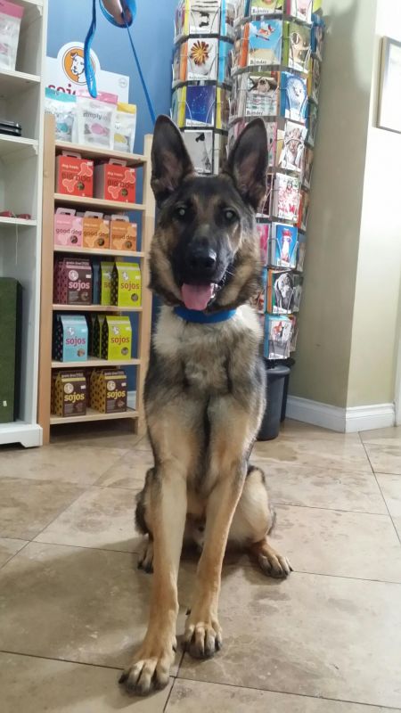 As a sable, he is one of those somewhat rare yet GORGEOUS colors. He is maybe just a year old. He likes to talk (a Shepherd trait) so you'll need to learn how to talk back :). But our favorite ones are the ones who like to have a conversation as their heads cock back & forth while they try to understand humans!
