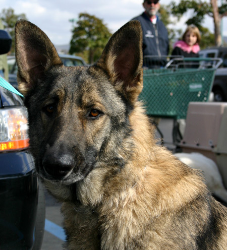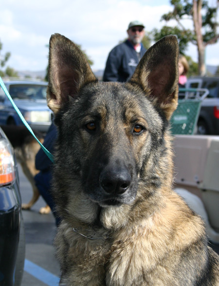 Saber can be particular about the dogs that he likes although it could be that he wants to play but isn't sure how. He is a typical verbal shepherd. We have found that he responds very well to correction, knows some commands and is wonderful on a leash. With a course of obedience, Saber will be a wonderfully rounded canine citizen.