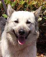 It seems Samantha was never taught the finer points of living in a home, but she's really trying her best to learn. We think she's about 18 months old, but still acts like a puppy in many ways - so we recommend a yard where she can enjoy running off her bursts of energy, even though most of the day she just wants to relax and enjoy her new security. Like a puppy, she'll chew your hands and get over-exuberant at times, and she's learning the difference between chewing her toys and your book - but she stops immediately when corrected and wants so much to please.
