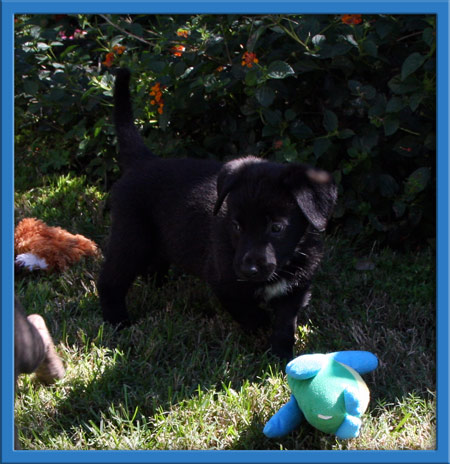 Our S pups made a surprise entrance into the world on August 24th, catching their mom's new owner by very unprepared. Needing immediate help, our volunteers scooped up the pups and mom and brought them to one of our foster homes. Unfortunately motherhood was not mama Schatzi's strong suit, so her 4 babies had to be hand raised. It has been a long 7 weeks,but these pups are finally ready to rock and roll. We have 3 little girls and their baby brother available for adoption. While we have loved raising these little sweet hearts, it is now time to find them new families to join. The puppies are very sweet and have been socialized with the big dogs in their foster home. These adorable Shepherd mix pups will be ready for their new families the last week of October and we are currently accepting applications for them.