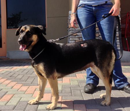 Scout is a stout young lady who loves to play with easy going dogs. She can be an alpha so would likely do best with a submissive female or a male. She does fine with small dogs as well.