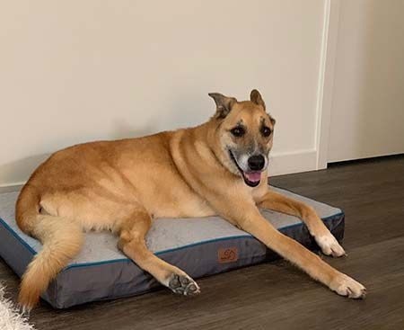 Scully is a laid back, easy going guy who would love to have a best friend with whom to spend his retirement years. He's an active senior, around 9-10 years old, who absolutely adores going for walks and is happy to stroll around for over a mile and then will celebrate by taking a nap when he gets home. He's a napping professional and can often be found on his back, looking like he fell asleep mid-rollover.