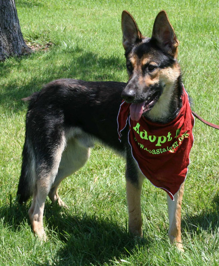 This dark and handsome boy is Shane! He was picked up as a stray by Animal Control, without any identification. His owners never came for him and his days were numbered at the county shelter. Coastal knew we could find him a great home, so we brought him into our safety net. Shane is roughly a year old, still growing into his frame and could use some exercise and good nutrition to bulk up a bit! He is currently living in a multi-dog foster home and gets along nicely with all dogs---big and little. Shane is very eager to please and would excel in a basic obedience class.