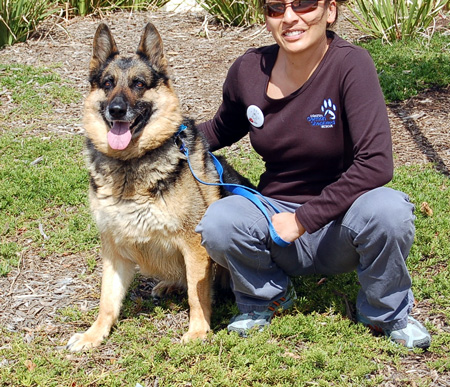 - she's an all around good girl. She has a bit of weight to lose and her foster family is working on that with her. She walks well on a leash and has very sweet manners.