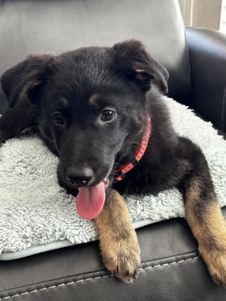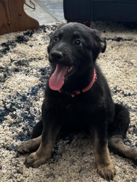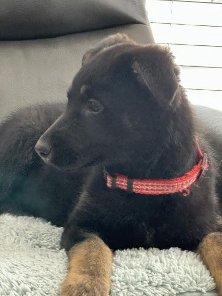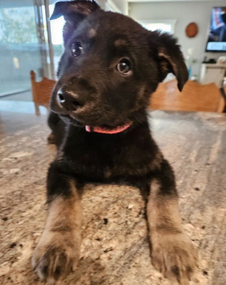 Coastal GSR received a call from a shelter that a box of puppies had been dropped off at a gas station and abandoned. There were four sisters. Fortunately we were able to get two of our dedicated fosters to take the girls and care for them. The shelter estimated that the girls were 6-7 weeks old when they came in. They are approximately 9 weeks old now. All of the girls are active, sociable, and fitting in well with their foster families.