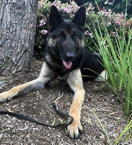 Shiba doesn't have a mean bone in her body, but can be a little jumpy and mouthy so would do best with older children. Shiba loves to chase down balls and toys, is very food motivated, a smart cookie, and will be a welcome addition to a family who loves active and young GSDs.