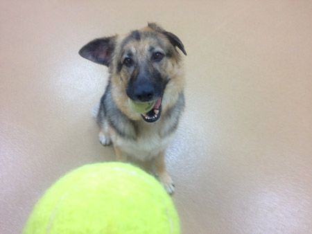 A real sweetheart, Shiloh is affectionate with her people, follows direction well, loves a good petting and would follow you to the ends of the earth if you're throwing a ball! She walks well on a leash, is a typical, smart GSD, very loyal, and has a playful personality.