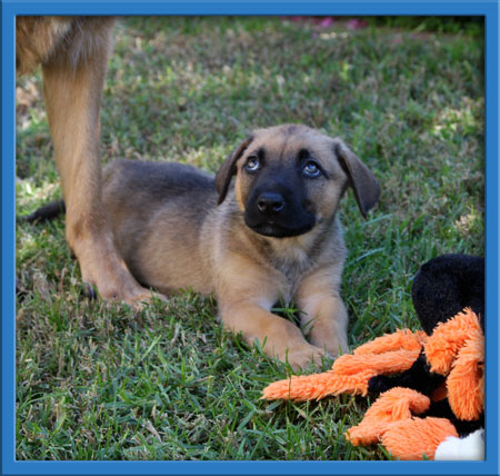 Our S pups made a surprise entrance into the world on August 24th, catching their mom's new owner by very unprepared. Needing immediate help, our volunteers scooped up the pups and mom and brought them to one of our foster homes. Unfortunately motherhood was not mama Schatzi's strong suit, so her 4 babies had to be hand raised. It has been a long 7 weeks,but these pups are finally ready to rock and roll. We have 3 little girls and their baby brother available for adoption. While we have loved raising these little sweet hearts, it is now time to find them new families to join. The puppies are very sweet and have been socialized with the big dogs in their foster home. These adorable Shepherd mix pups will be ready for their new families the last week of October and we are currently accepting applications for them.