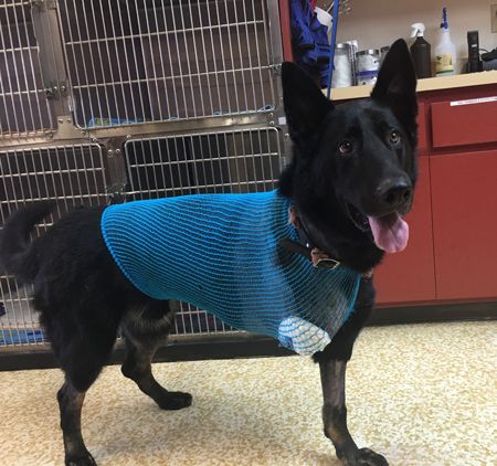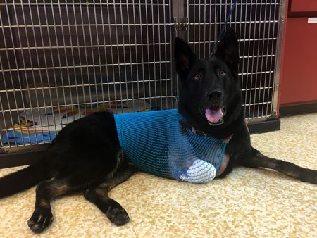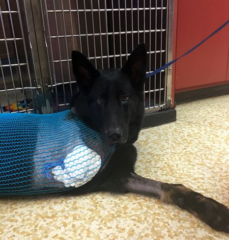 We attempted to repair his leg, but the break was displaced and we couldn't get it to heal correctly. The orthopedic specialist recommended amputating the leg to give him the best shot for a long and happy life. He recovered nicely and is building up muscle and walking great on three legs.