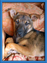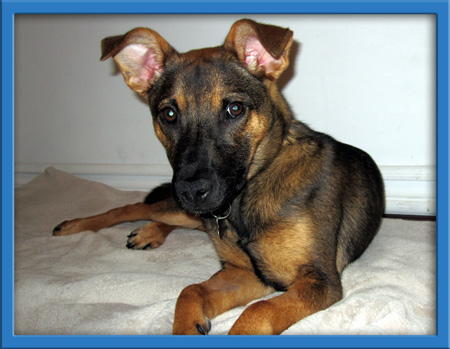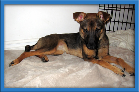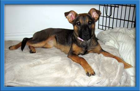 Poor Sprite has not been socialized with people but she has with dogs. She adores the company of big & small dogs. When we say little, we really mean it!!! Sprite looks like a super miniature of a sable German Shepherd. She is dainty and quiet. We are working on her people skills and are confident that she will learn to love 2 leggeds as much as she does the 4 legged variety!