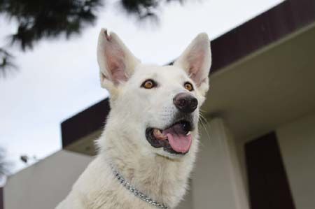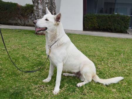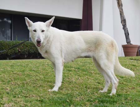 Star is a very sweet girl who walks well on a leash, is perfect in the car and likes spending time with people. She's a leaner, a kisser, takes treats gently and just starting obedience training, which she's picking up quickly. Star needs a solid handler, as she can get overprotective of the women in the household. This beauty is large (as females go), has a gorgeous, creamy white coat and is sure to make anyone happy!