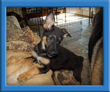 Starr & Stella, are definitely a dynamic duo. These girls are crate trained, sleep through the night, have mastered the use of the dog door, and even know how to sit for their dinner! They are currently living in a home with 9 & 10 year old human siblings and an adult Rottie who is showing them the ropes. Like typical puppies they love to play, but are responding well to boundaries and they sure do love to please.