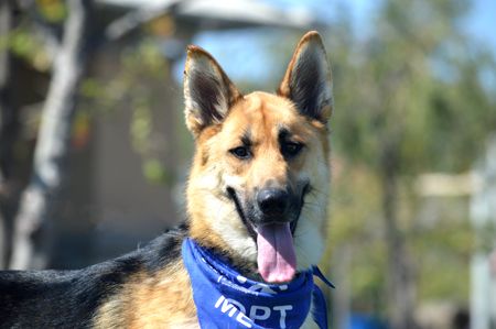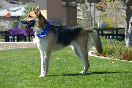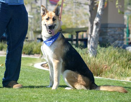 His name is Storm, but he has the sunniest and sweetest disposition, especially for a dog that was neglected and kept caged in the backyard 90% of the time. While in the cage, he did not have a blanket, bed, food or water, and was hit and mistreated by the male in the house. When neighbors rescued him, he was covered with fleas and had matted hair. The groomer had to wash and comb him out four times to get all of the fleas! Since he was only allowed outside, Storm wasn't housebroken, but he is super sharp and it didn't take long for him to catch on- he's now potty trained and great in the house. Like all German Shepherd Dogs, Storm catches on quickly with a regular routine.