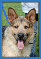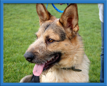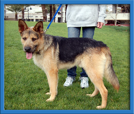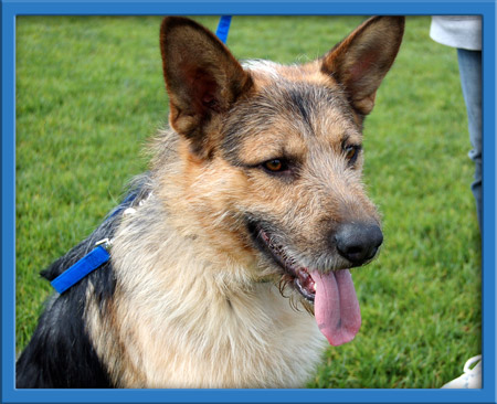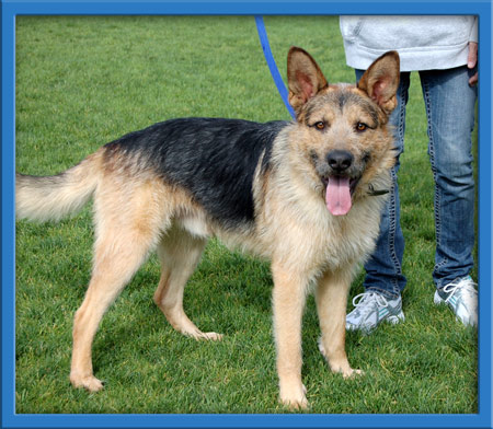 Streudel is probably a mix between some sort of terrier and German Shepherd. He gets along well with other dogs and met a cat on his first night out of the shelter.