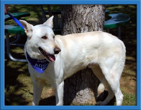 Summit is a beautiful and large white shepherd. For his size, he is as gentle as can be. He is very obedient and very shy so needs his confidence built up. We were able to move him out of boarding as it was obvious that he was pretty traumatized by the whole experience.