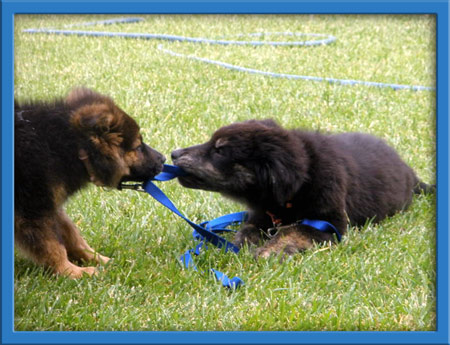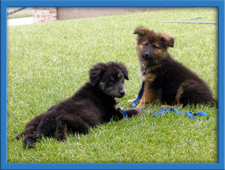 The S pups are 3 mos old, look like little black bears and have tons of energy. Their crate training is going very well - they will now sleep through the night without a peep. We're not sure how big they are going to get but we believe that they will be rather large at maturity.