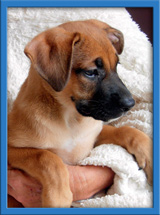 Tally is the tallest of them all. She appears to be pure boxer! But, we do know that her mom is a German Shepherd. Those long legs of hers give her the ability to climb tall trees in a single bound! Well, not really but you get the idea. She is a total love bug and loves to play with her rope toys and balls.