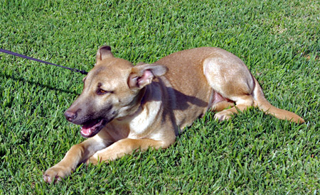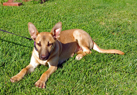 She's being crate trained and doing fine with it. She's housebroken, completely. Her foster mom reports that Tawny is very smart, has a healthy appetite, trains quickly, comes when called, very quiet, playful, affectionate and friendly with all. She's learning to walk on a leash and loves getting out and walking with her foster doggy sisters. She sleeps all night quietly in her crate. She will run off with a slipper, but will quickly trade for a toy.