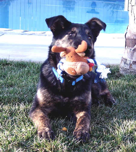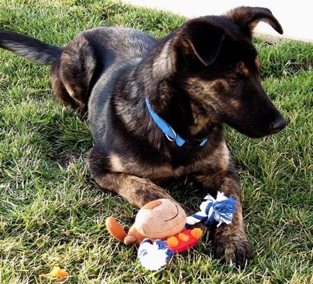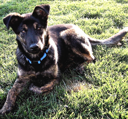 We found Taylor languishing in a high kill shelter and just had to help him. He's an adorable shepherd boy, about 6 mos old. His legs and paws have the cutest brindle patter. Taylor is in a foster home where he is settling right in with the other animals - shepherds and kitties. He loves to snuggle and play.