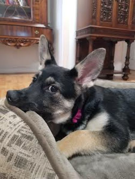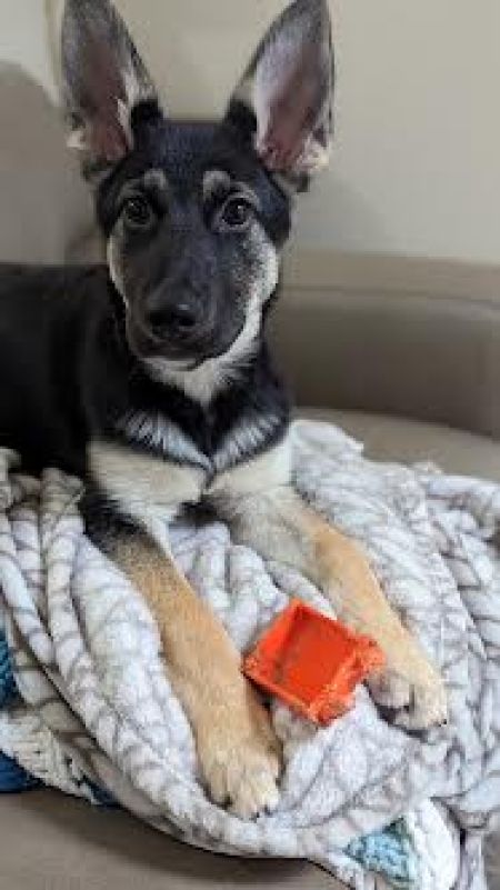 He is crate trained, housebroken and knows basic commands. He is in a foster home with a one year old Malinois/GSD and boy can the two of them play! They play until Teton is tired, and then he stops and wants to snuggle. He also enjoys playing with toys as well as with his foster sister.