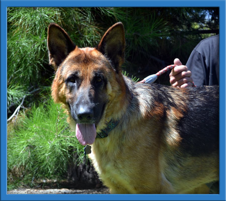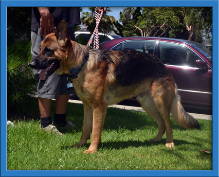 Theo loves the water, off leash hikes and playing fetch. Get out a leash for a walk and Theo does the Happy Dance! Theo loves people and really enjoys kids but small kids would require an experienced owner to train him as he is still a giant pup who innocently could steal children�s toys or plow into them chasing one of his own. He is wonderfully good natured. For as much neglect as Theo has experienced in his short life, he has NO resentment toward any human - just joyous and loving. Theo is a flexible and adaptable dog. His ideal home would enjoy activity in the outdoors or playing regularly with him, be committed to some basic training and initial patients, but be rewarded with one of the most loving gentle German Shepherds you can imagine. Your friends will be envious!