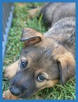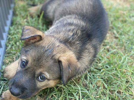 Rain is a three year old GSD who probably lived somewhere where she was not appreciated or taken care of. Amazingly, her puppies were born healthy but Rain very thin with a dull coat. We have no idea who or what the dad was.