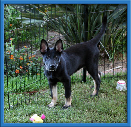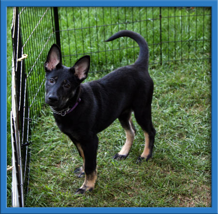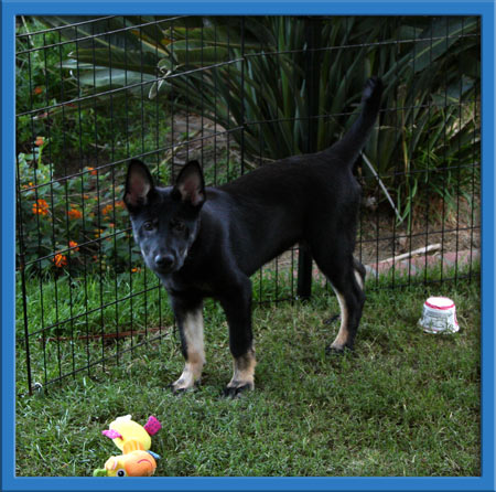 She is a very bright little girl, learning things very quickly. She is crate trained, doing well with her potty training and now walks on a leash. Tiana is a very confident and social puppy. She loves people and the company of other dogs. Playing with toys are another thing high on Tiana's list of things she loves. She also loves to carry her toys around. Being very smart and motivated to pleas, Tiana should excel at obedience work. This bi-color beauty is active little girl and should grow up to be a wonderful companion for an active household.