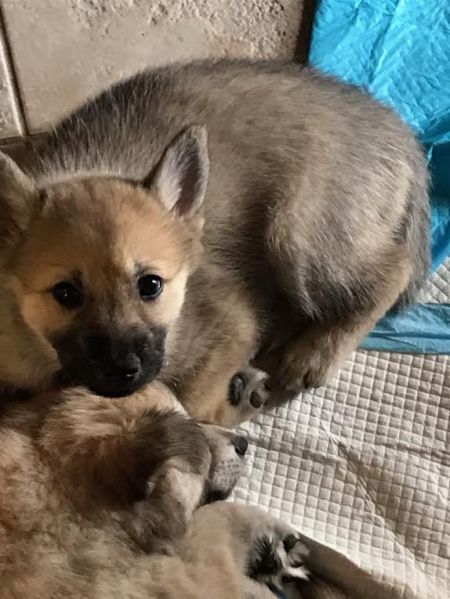 In the rural high desert there is a rescuer who feeds and befriends the stray dogs that call the rocks and canyons their home. She walks the train tracks and sets up feeding stations for the souls that have been abandoned and learn to fend for themselves. One of the female dogs that she had been trying to trap and befriend was seen building a den and spending a lot of time away. Low and behold, she had birthed a litter of puppies in the den she built between two boulders. Thanks to the help of a wonderful trapper, momma and pups were brought to safety. Momma is learning how to trust again and she is decompressing in a safe environment- her babies have been hand raise since about three weeks of age! They are now ready to be adopted! These pups are a combo of shepherd and other herding breeds, plus a big portion of cuteness! They each have their own personalities but all are solid, balanced pups who are ready to join families of their own!