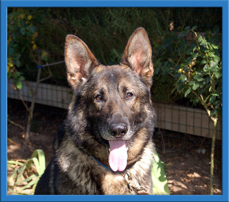 Titus was labeled as 8 years old in the shelter which was a death knell to begin with. After spending some time with him, our best guess is that he is probably about 5 years old. PERFECT age for a shepherd. Titus can be walked on a flat collar, he is dead on housebroken, he doesn't bark. This is an amazing dog - not only beautifully behaved, but a drop dead gorgeous sable!