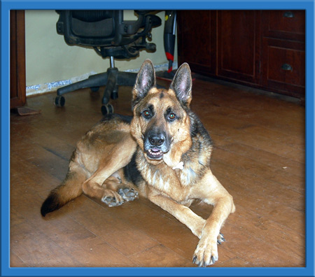 After three weeks in a foster home, Topper has a decidely different outlook on life! No longer hunched over or depressed, he is a proud, happy dog. Topper tends to be on the serious side and will fret a little bit, whining quietly if he isn't sure what is going on. Every day this gets better - to the point that he now plays with the youngest member of his foster pack.
