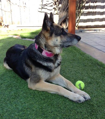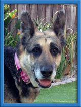 Twyla was rescued from a homeless man who saved her from two other homeless men who were beating her with a stick. Now safe and sound, Twyla is a dream on leash and walks right by your side. She’s housebroken & crate trained, loves her daily walk at the park and loves people of all ages, especially children. She must have lived with a family in the past. She’s non reactive to other dogs, as well as cats, but does best in a home with male dogs; she enjoys playing and wrestling with her GSD foster brother. Twyla knows her basic commands and is learning to play fetch; she loves to carry her squeaky tennis ball around the house.