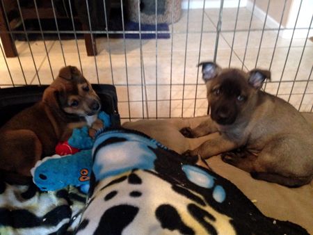 Meet our new puppies, Uma and Ulysses. These two darling pups were rescued from a multi dog home. Their mom is a sweet Shepherd who is on the smaller side and there is no telling who dad is. They have been raised in a foster home for the past few weeks and are just wonderful babies. They are very social and love to play. They are crate trained and have already started working on their potty training. They are both very smart and want to please.