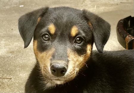 We had this adorable litter DNA tested so that we could know for sure what breeds they are! The results are in: Doberman, Husky, German Shepherd and a small amount of Chow Chow. They are smart puppies that don't seem to be phased at all by their rough start. The puppies are young but are in the process of being housebroken, learning to use a dog door, and being crate trained! They are making great progress!