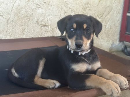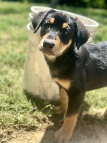 We had this adorable litter DNA tested so that we could know for sure what breeds they are! The results are in: Doberman, Husky, German Shepherd and a small amount of Chow Chow. They are smart puppies that don't seem to be phased at all by their rough start. The puppies are young but are in the process of being housebroken, learning to use a dog door, and being crate trained! They are making great progress!